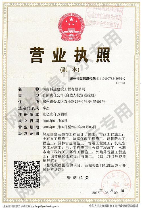 河南科建建設工程有限公司是一家以房屋建筑、建筑裝飾、建材貿易及大型建筑機械設備租賃為主營業(yè)務的成長型企業(yè)。擁有建筑工程總承包壹級資質,裝飾裝修、防水防腐保溫等專業(yè)承包壹級資質,注冊資本1.1億元。